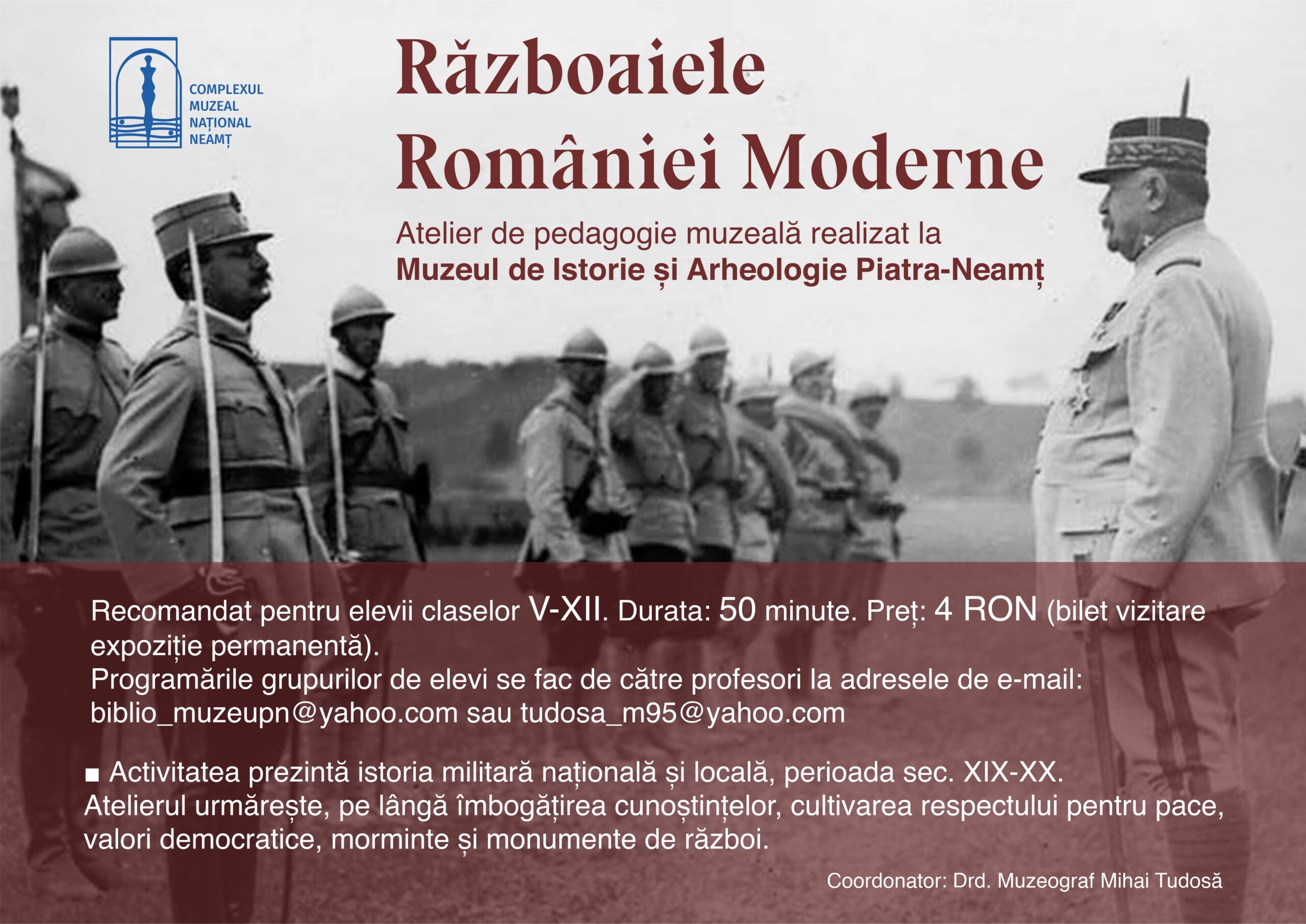 Elevii interesați și profesorii care doresc să înscrie grupuri pot trimite solicitări pe adresele: biblio_muzeupn@yahoo.com și tudosa_m95@yahoo.com. Astfel, expozițiile sălilor 1-16 vor fi accesibile într-un context educativ, menținând interesul tinerilor pentru istorie.
