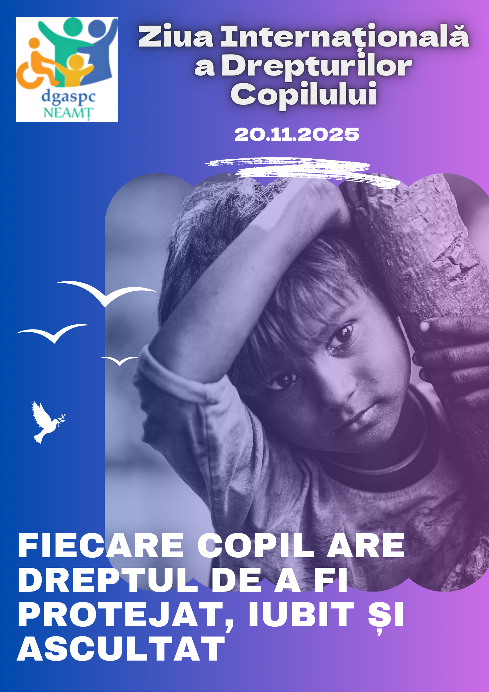„20 noiembrie nu este doar o dată în calendar, ci un moment în care privim cu recunoștință spre copii și spre drepturile lor. Este o zi care ne invită să reflectăm asupra modului în care putem contribui, fiecare dintre noi, la o lume mai dreaptă și mai blândă pentru ei. Copiii trebuie să știe că au dreptul la respect, la iubire, la visuri îndrăznețe și la un viitor luminos. Le dorim tuturor o copilărie frumoasă, plină de încredere, curaj și bucurie!”, a declarat Cristina Păvăluță, director general al DGASPC Neamț.
