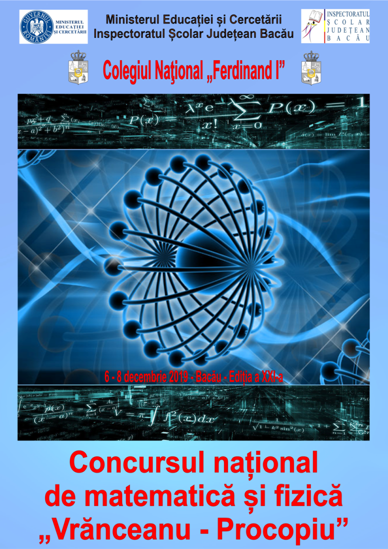 În perioada 5-7 decembrie 2025, Colegiul Național „Ferdinand I” din Bacău a găzduit etapa națională a Concursului Interdisciplinar de Matematică și Fizică „Vrânceanu-Procopiu”. La acest eveniment au participat elevi din clasele IX-XII din întreaga țară, care au rezolvat două probleme de matematică și două de fizică.