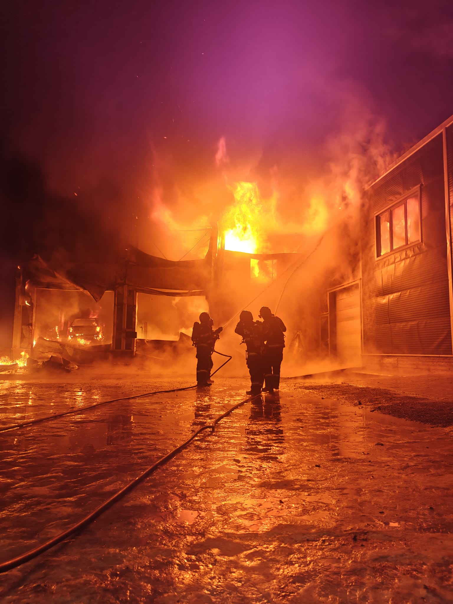 La sosirea forțelor de intervenție, incendiul se manifesta generalizat la service și parțial la un garaj al clădirii în formă de L, realizată din panouri tip Sandwich. Existând riscul extinderii incendiului la întreaga construcție și la alte clădiri sau autoturisme din zonă, intervenția a fost una complexă și rapidă.