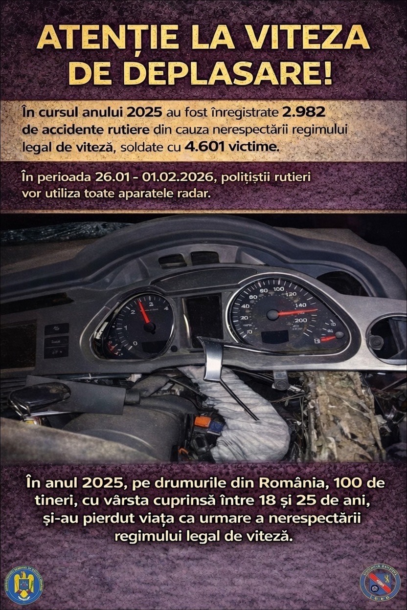 În contextul acestor statistici, autoritățile au stabilit un Calendar de acțiuni pentru reducerea riscurilor rutiere pentru anul 2026. În perioada 26 ianuarie - 1 februarie 2026, vor fi organizate activități specifice în județul Neamț pentru a asigura respectarea limitelor legale de viteză.