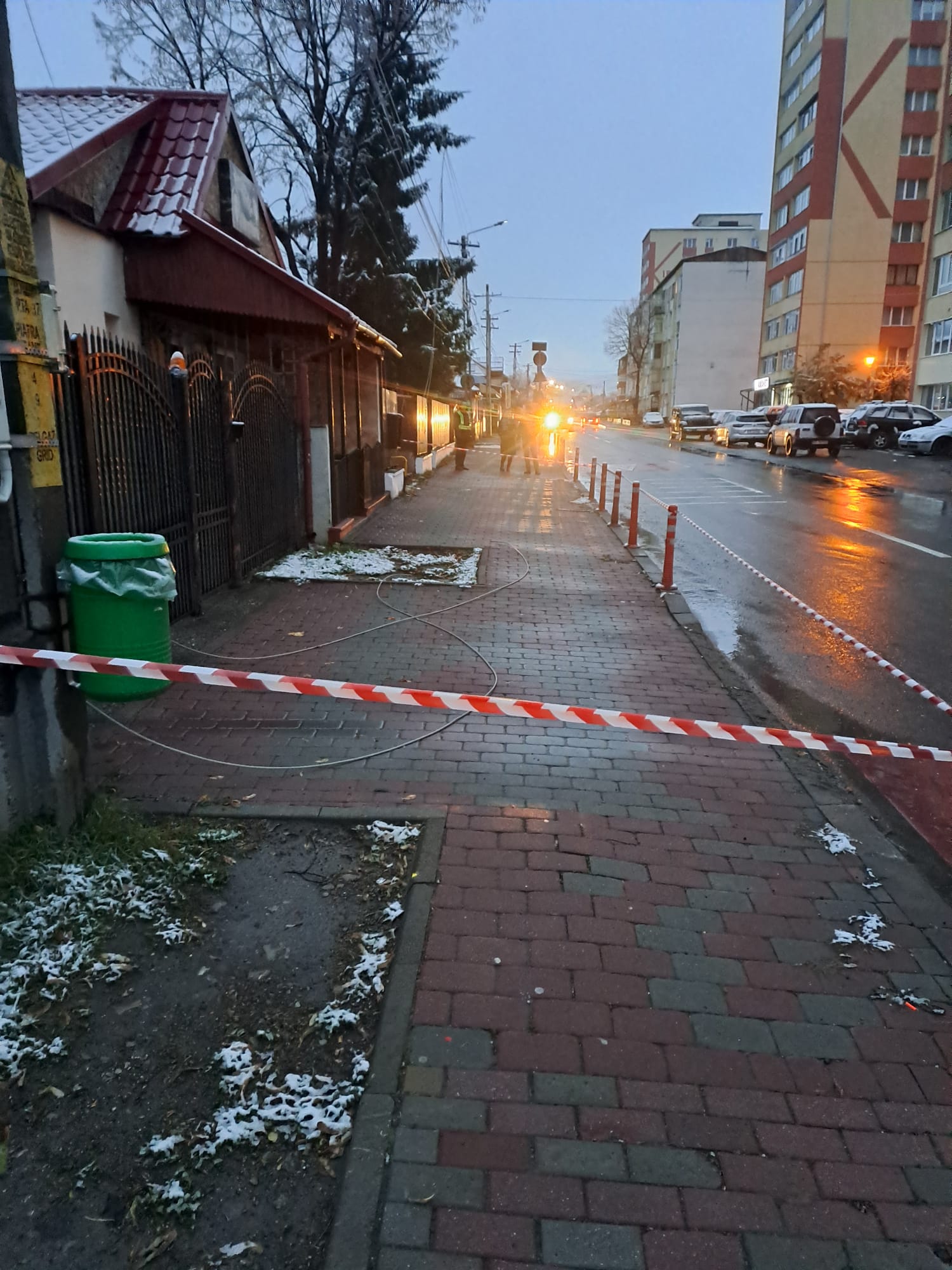 Polițiștii locali din Piatra Neamț au intervenit miercuri, 19 noiembrie, pentru a elimina un risc de electrocutare generat de ruperea unor cabluri electrice în zona unei școli și a unei grădinițe. Cablurile au cedat sub greutatea zăpezii apoase căzute în noaptea precedentă.