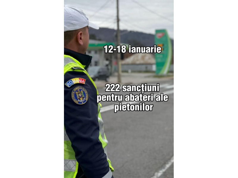 În urma controalelor derulate între 12 și 18 ianuarie, au fost aplicate 220 de sancțiuni, majoritatea sub forma avertismentelor. Astfel, polițiștii urmăresc să corecteze comportamentele pietonale care sporesc riscul de accidente, fără ca aceste sancțiuni să se fi soldat cu urmări grave în trafic.