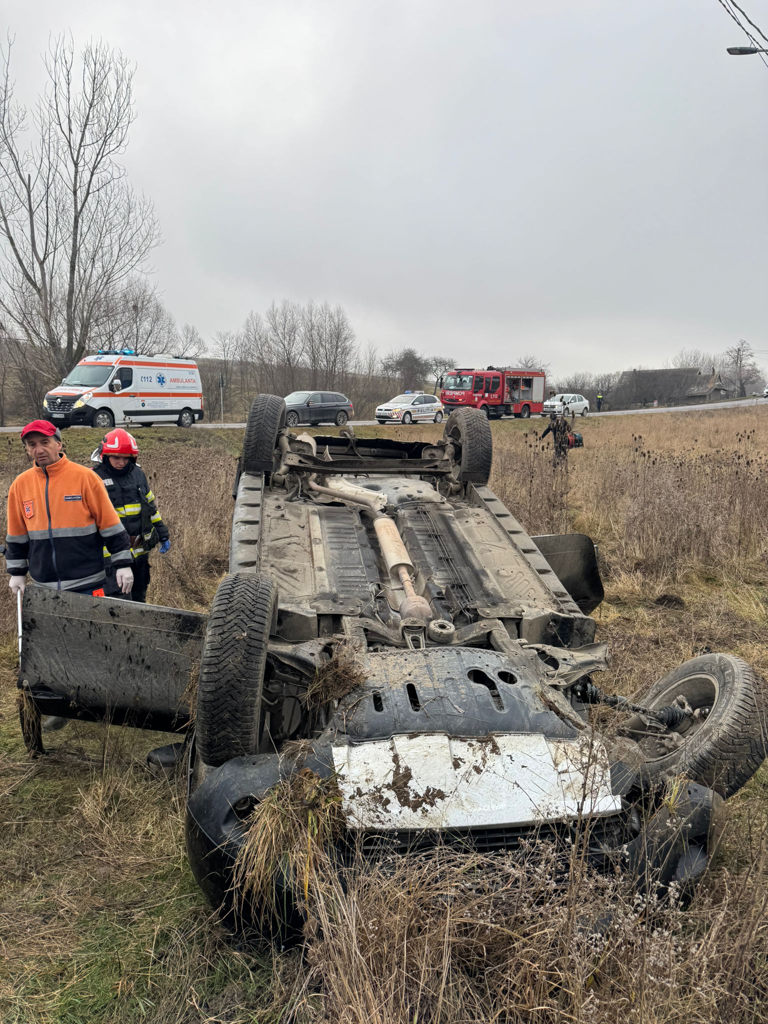 Cu ajutorul tărgii lopată, pompierii au scos din vehicul și șoferul, un bărbat în vârstă de 59 de ani. Toate cele trei victime au primit îngrijiri medicale și au fost transportate la spital.