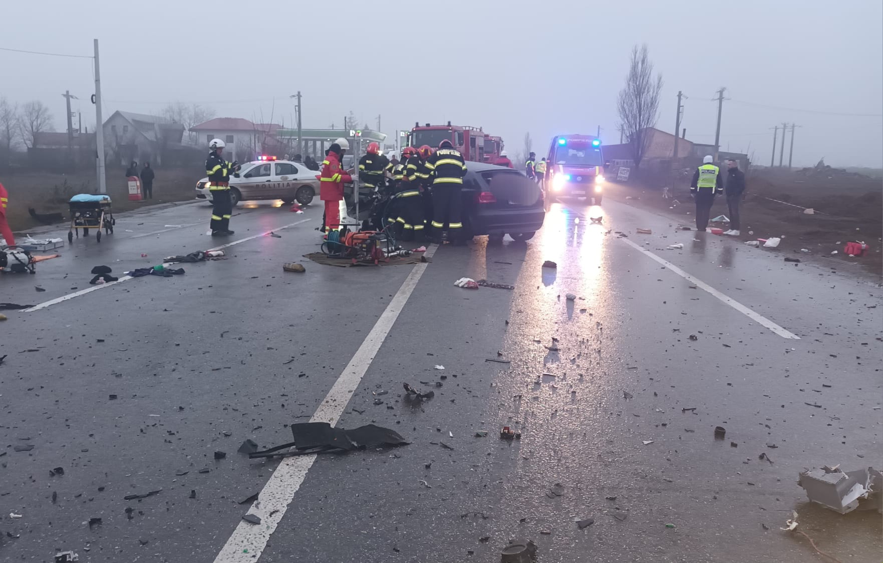 Conducătorul unui autoturism a rămas încarcerat, iar pompierii au folosit echipamente speciale pentru a-l extrage. Deși a fost resuscitat în timpul intervenției de echipajul SMURD TIM, bărbatul de 41 de ani nu a răspuns manevrelor și a fost declarat decedat de către medic. Alte patru persoane, printre care copilul salvat și o femeie de 37 de ani, au fost transportate la spital cu răni de gravitate diferită.
