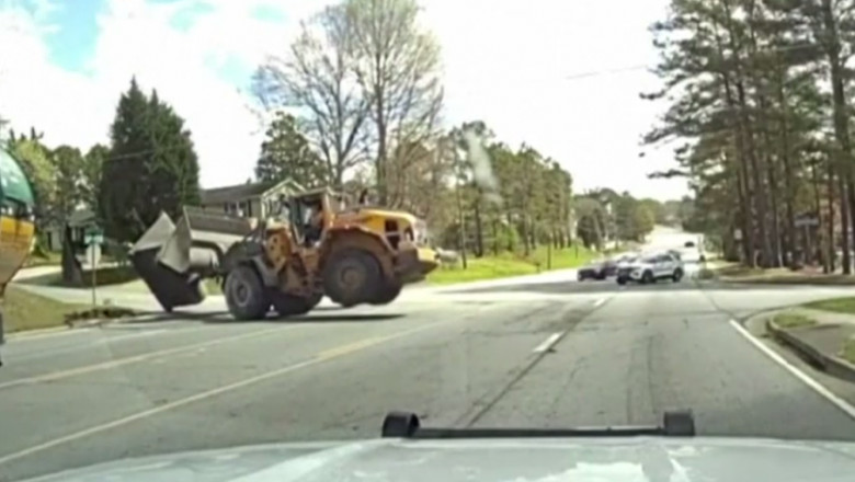 Conform poliției, situația a avut loc când un fost angajat nemulțumit al unei firme de construcții a refuzat să oprească la semnalul autorităților și a început să fugă cu o volă. Aceasta este o mașină exceptional de grea și puternică, folosită pentru lucrări de construcții, iar mașinile polițiștilor nu au putut să îi facă față.