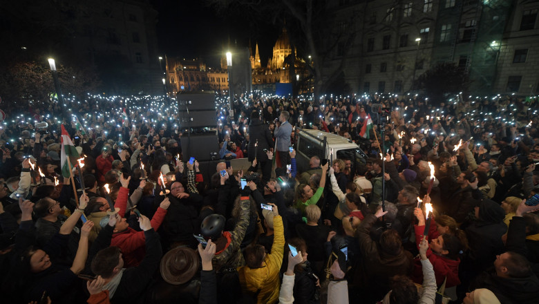 Mii de oameni au manifestat la Budapesta pentru a cere demisia premierului Viktor Orban, în urma apariției unei înregistrări audio care pretinde a prezenta implicarea unui membru al guvernului într-un caz de corupție. Apelul pentru protest a fost lansat de Peter Magyar, avocat și fost colaborator al puterii naționaliste ungare, acum critic al guvernului pe care îl acuză de corupție.