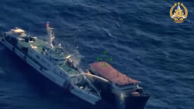 Nava Philippinez se ciocnește cu nava Chineză, patru răniți în urma atacului cu tunuri de apă" "Video: Navă Philippineză atacată de navă Chineză cu tunuri de apă, patru răniți la frontiera Mării Chinei de Sud