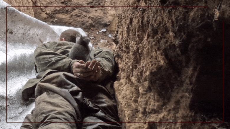 Pe rețelele sociale au apărut noi imagini cu polițiști ucraineni luptând în prima linie a frontului împotriva trupelor ruse de câteva luni. Un regiment de asalt, format din polițiști ucraineni, este angajat în luptele din tranșeele de pe frontul ucrainean. O înregistrare a unei astfel de lupte arată polițiști ucraineni capturând un soldat rus, după un atac asupra armatei ruse. La finalul înregistrării, prizonierul rus este înfățișat cu o pisică pe spate - o "pisică de tranșee", folosită de ambele părți ca mascota și pentru combaterea rozătoarelor. Imaginile au fost publicate de militarii din regimentul "Tsunami", parte a brigăzii "Furia" a poliției naționale ucrainene. "Titanii noștri atacă pozițiile ruse în cele mai fierbinți zone ale frontului", se arată în comentariul care însoțește înregistrare video postată pe Facebook-ul brigăzii ucrainene. Ucrainenii se deplasează în tranșee cu soldați ruși morți și sunt bombardați de artileria rusă. Un polițist întreabă: "Ai verificat adăpostul acela? Curăță tranșeea!" Polițiștii ucraineni găsesc un soldat rus într-un adăpost și îi ordonă să arunce o grenadă. Soldatul rus este scos afară și interogat, iar la final este prezentat pe burtă în tranșee, cu mâinile legate și cu o pisică pe spate, în timp ce ucrainenii îl întreabă câți soldați apărau poziția și câți au scăpat. Pisicile de tranșee au devenit o prezență comun